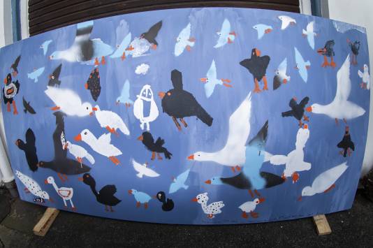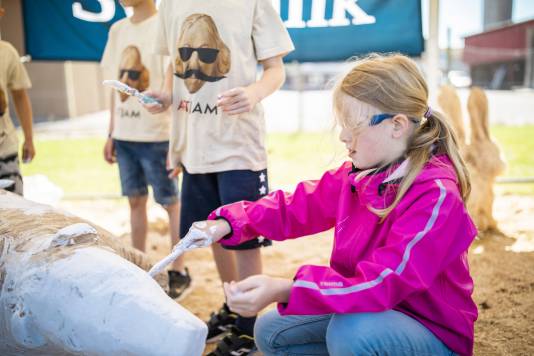 Ana is a known face in Højer. Back in the days she made her very first wood sculpture at Art Jam Højer. She has visited us several times, and every time is a big joy. She has a sparkling and positive personality and she is spreading her lively humor and happiness around. She is helpful and always ready for new challenges. Her ideas are creative, and she is easily finding solutions when problems occur. Her artworks are always kind and happy, just like herself. We are happy that we got the possibility of spending time with Ana, who is truly lovable. Thanks for visiting us once again, Ana!