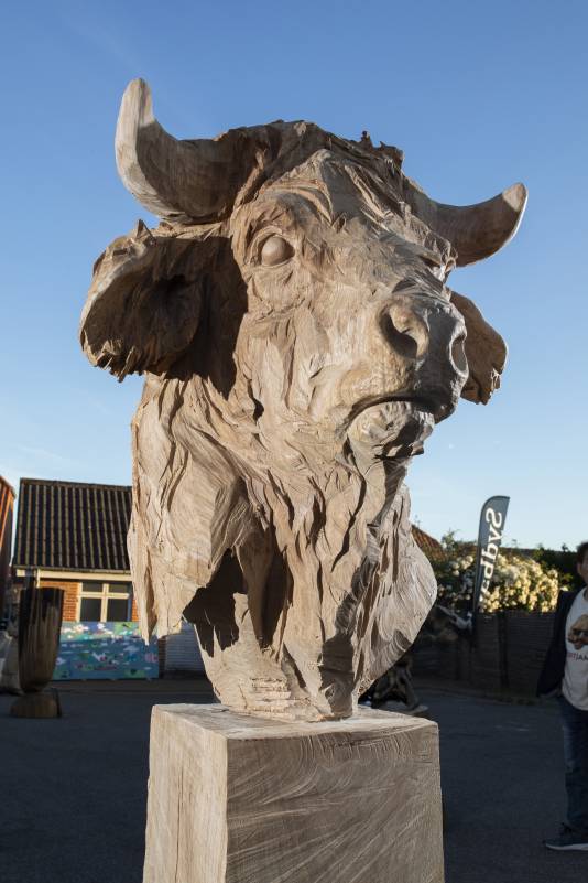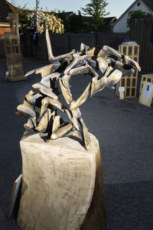 Julius has a strong and old connection to the Art Jam. He has participated MANY times and every time is a great pleasure for us all. He is a happy person, filled with wisdom and helpfulness. He likes to pass on his craft skills to younger generations and to spread happiness around him. At the Art Jam 2019 Julius made two works! A sculpture from the Hans Christian Anderson farytale ‘the woman with the eggs’ which is now located at local business in Hojer. The other work he made was a commissioned work of the viking warrior “Holger Danske”. The sculpture has drawn headlines in the Danish Newspapers and is truly a breathtaking artwork. Julius, thank you for always bringing your great mood to the Art Jam!