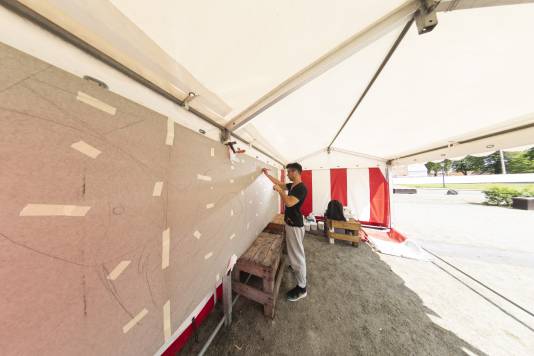 Nishimura Naruo working, Art Jam in Højer 2019